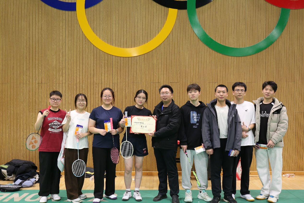 本次羽毛球赛采用团体积分制,设男单、男双、女单、女双和混双五个项目,分为小组循环赛、晋级赛和总决赛三个阶段。经过激烈角逐,光电与矿物材料功能化代表队获得冠军,矿物材料与综合利用实验室代表队获亚军,“第一队”获季军。