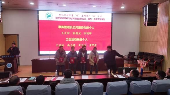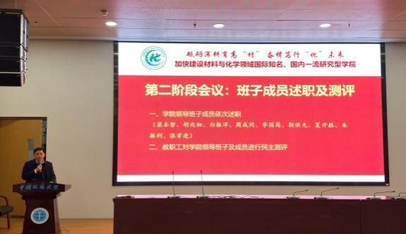 第四届教职工大会第二次会议暨第四届工会会员大会第二次会议在材化楼110报告厅召开,学院全体教职工和学生代表参加会议。会议分审议年度工作报告、院领导述职测评、先进表彰和荣休迎新庆典、院级科技机构授牌等四个环节。